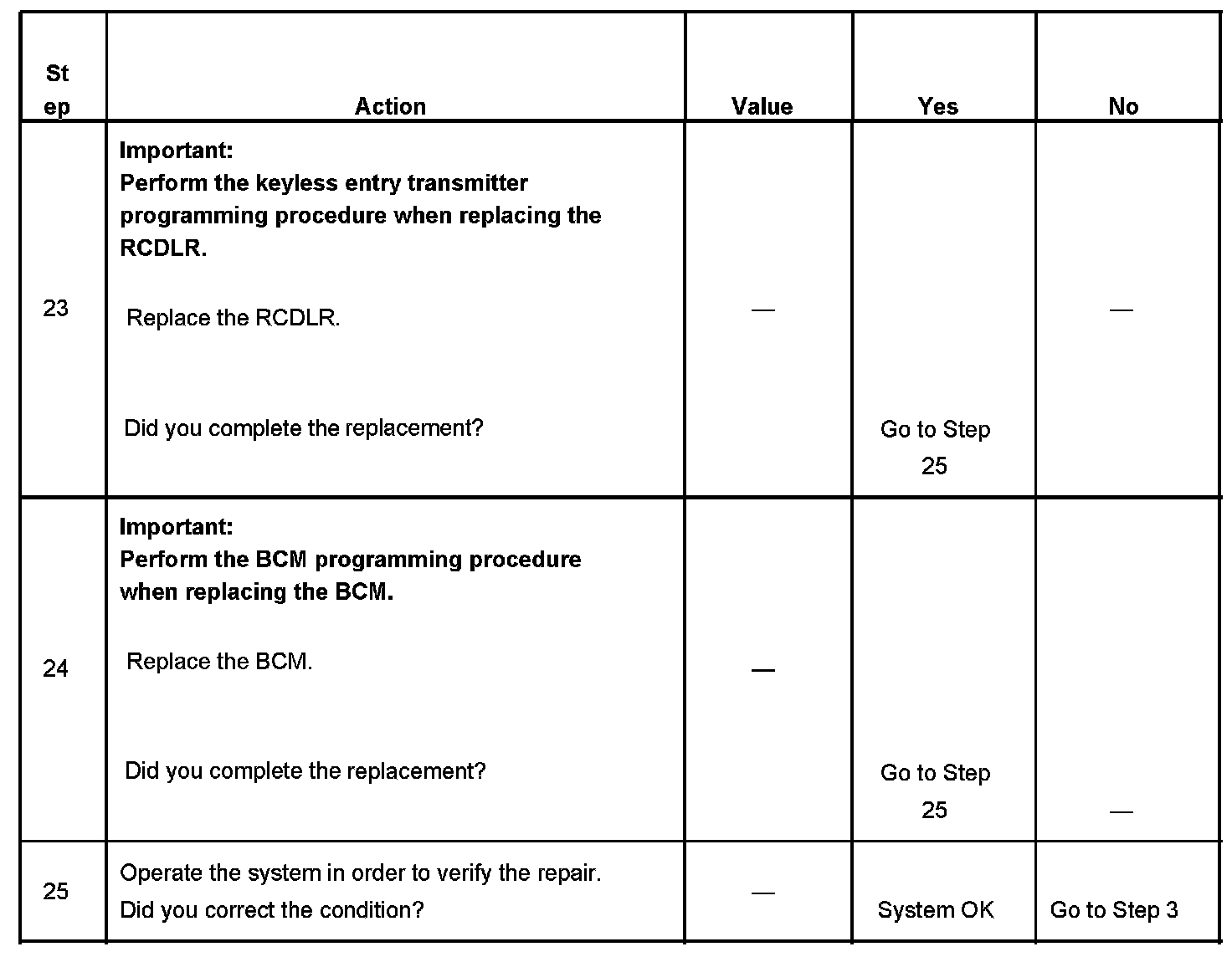 KEYLESS ENTRY SYSTEM INOPERATIVETEST DESCRIPTION
