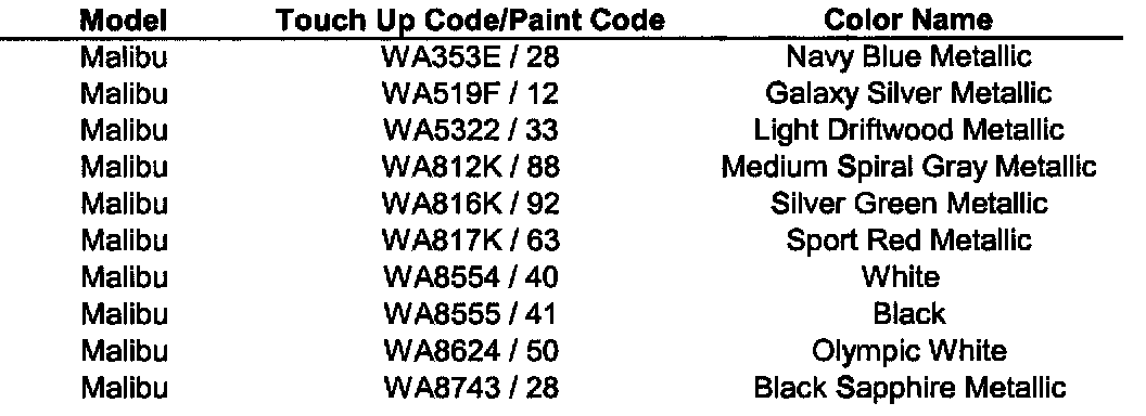 Malibu V6-3.5L VIN 8