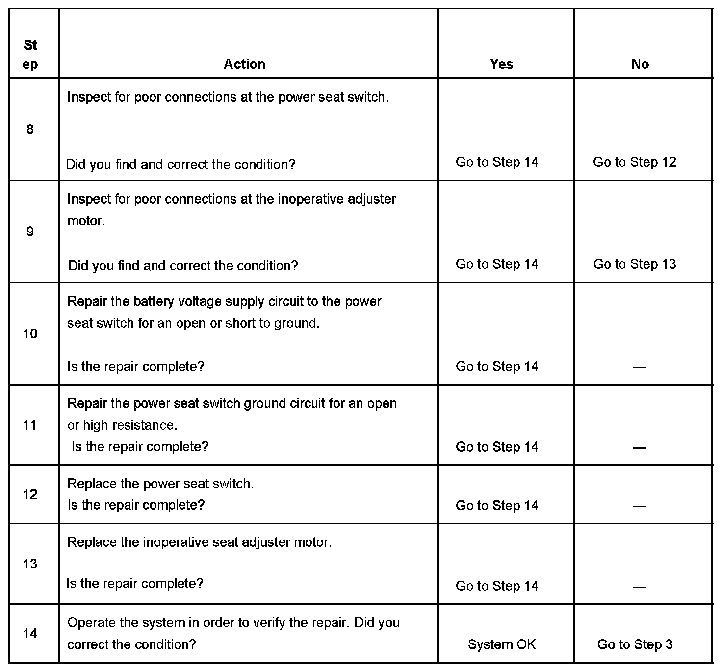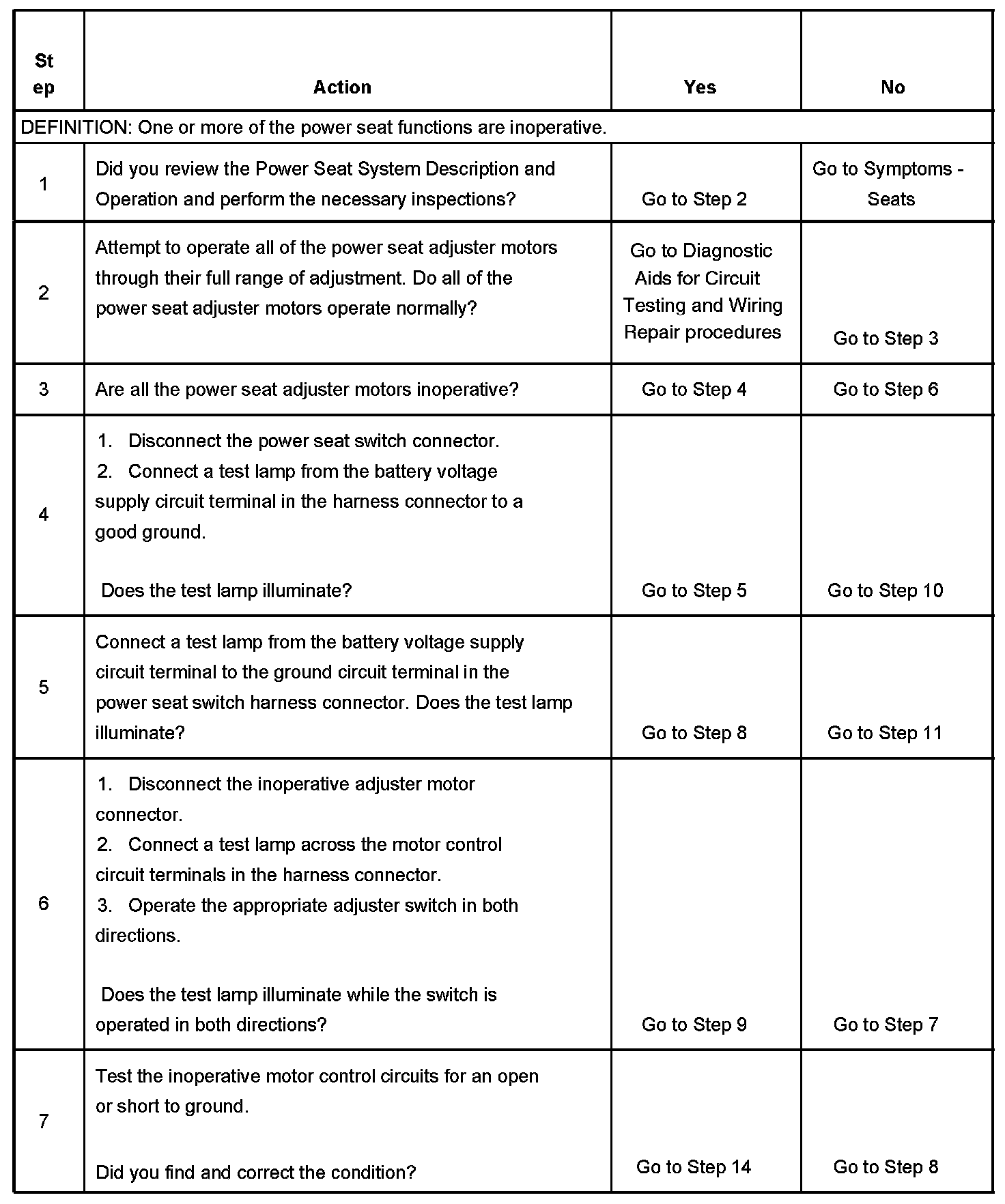 Power Seat Inoperative