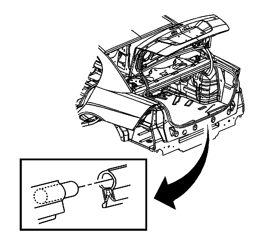 1. Apply a bead of weatherstrip adhesive GM P/N 12345096 (Canadian P/N 993365) or equivalent to the edge of the pinch-weld flange and around the entire perimeter of the rear compartment opening.