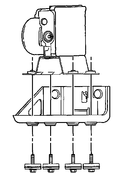 6. Carefully lift the brake modulator assembly just enough to clear the bracket, then support the assembly.