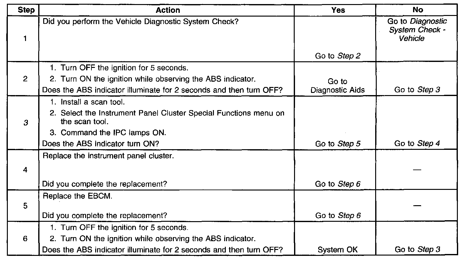 3. This step tests if the IPC is able to turn OFF the ABS indicator.
