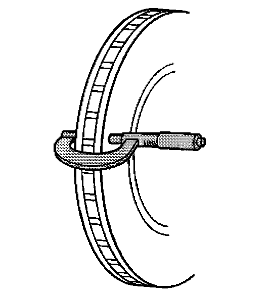 3. Using a micrometer calibrated in thousandths-of-a-millimeter, or ten-thousandths-of-an-inch, measure and record the lowest thickness of the brake rotor at 4 or more points, equally spaced around the rotor.