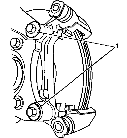 4. If reusing the bracket, thoroughly clean the pad hardware mating surfaces (1) of the caliper bracket, of any debris and corrosion.