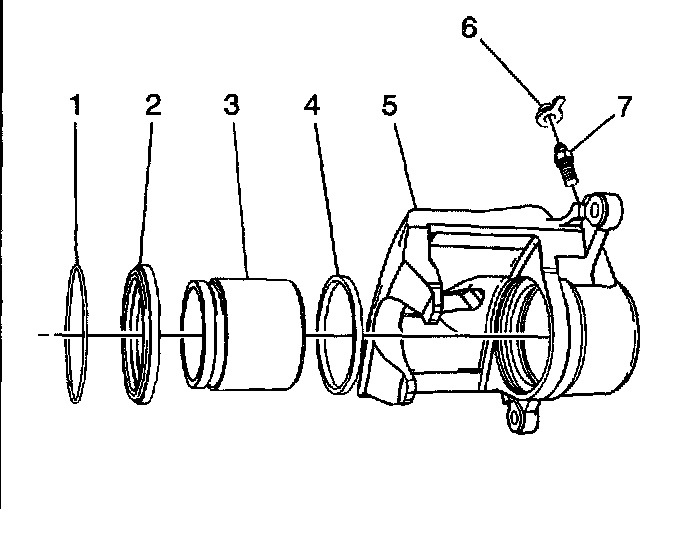 1. Lubricate the new piston seal (4) with Delco Supreme 11 GM P/N 12377967 (Canadian P/N 992667), or equivalent DOT-3 brake fluid from a clean, sealed brake fluid container.