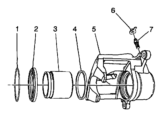 2. Install the lubricated, new piston seal (4) into the caliper bore.