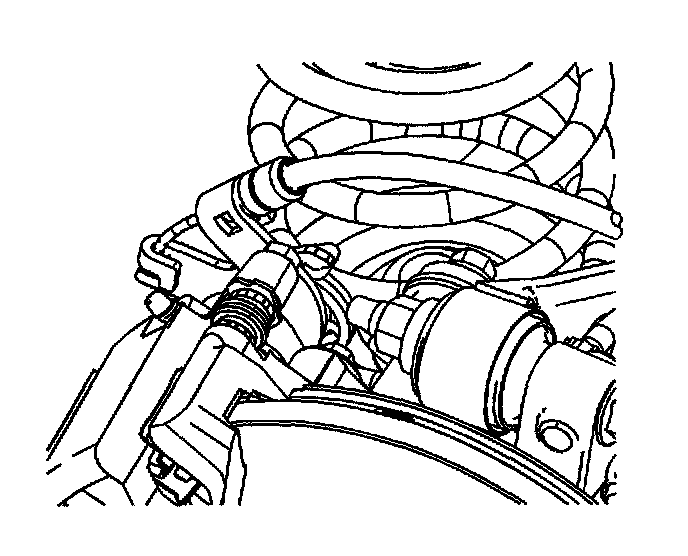 12. Cap or plug the opening in the brake caliper and the brake hose to prevent fluid loss and contamination.