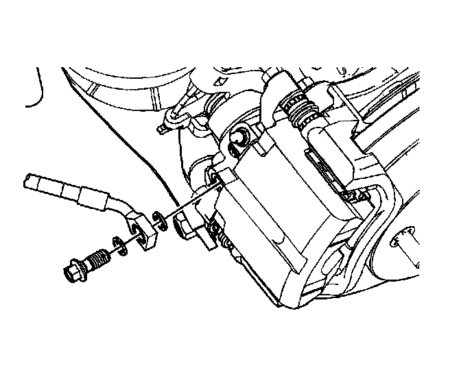 7. Install the brake hose and the brake hose-to-caliper bolt to the brake caliper.
