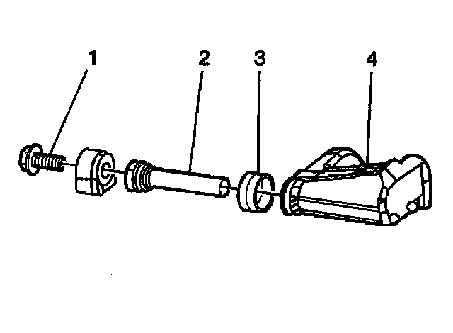 4. Install the brake caliper guide pins (2) to the brake caliper mounting bracket (4).