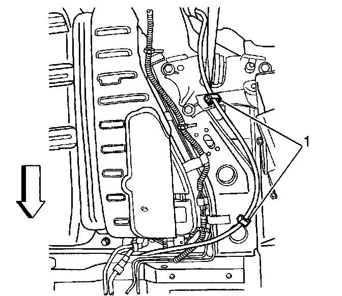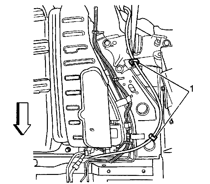 8. Remove the rear park brake cable retainer bolt (1).