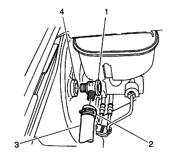 3. If replacing the vacuum check valve (1), remove the grommet (4) from the brake booster and discard the grommet.