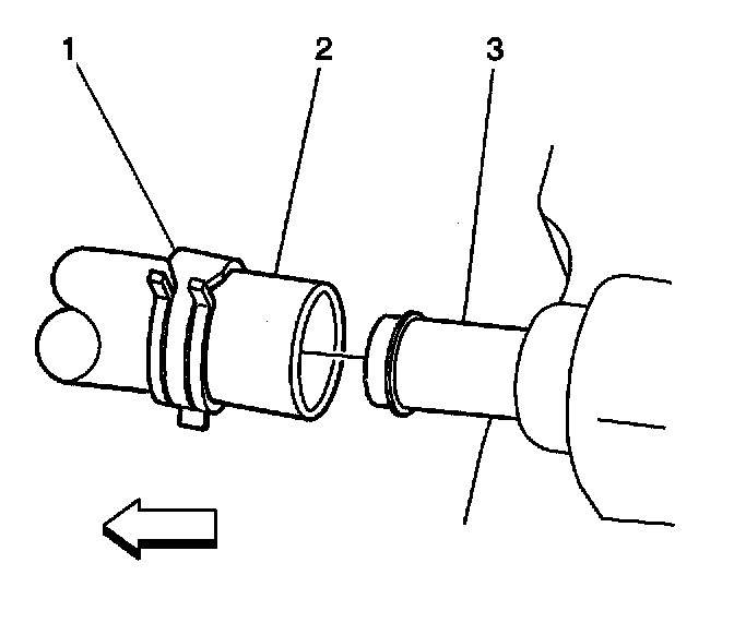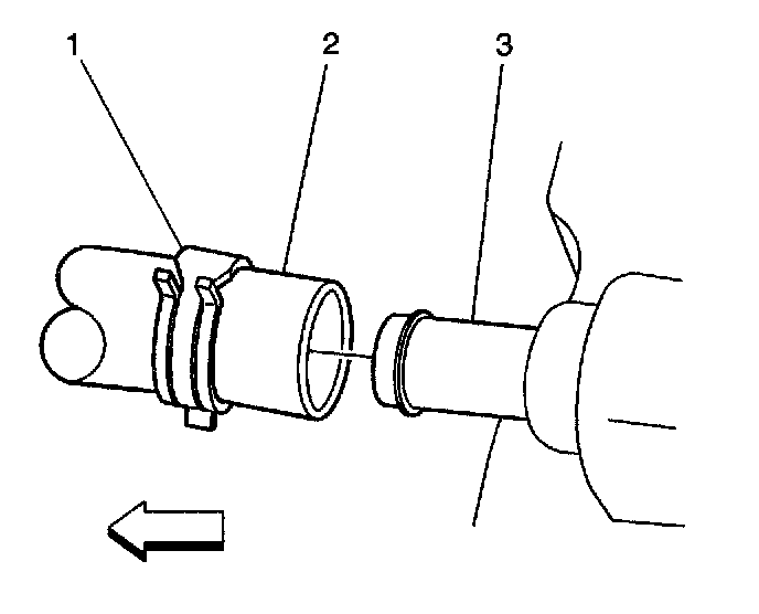 1. If the vacuum hose (2) was removed, install the vacuum hose into position on the vehicle as noted prior to removal, then connect the vacuum hose (2) to the engine intake manifold connection (3) and secure with the vacuum hose clamp (1).