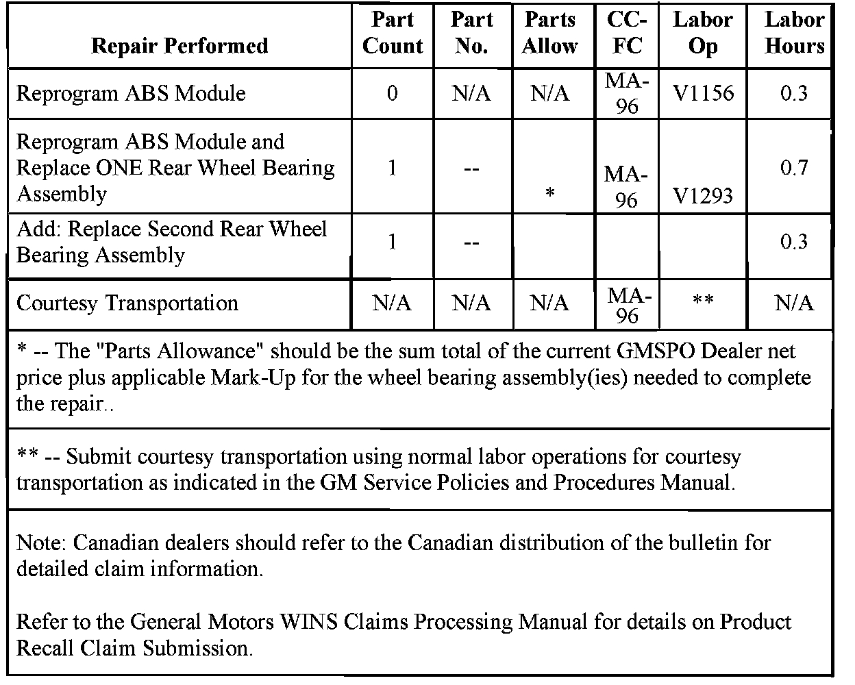 Dealers should confirm vehicle eligibility through GMVIS (GM Vehicle Inquiry System) before beginning recall repairs. [Not all vehicles within the above breakpoints may be involved.]