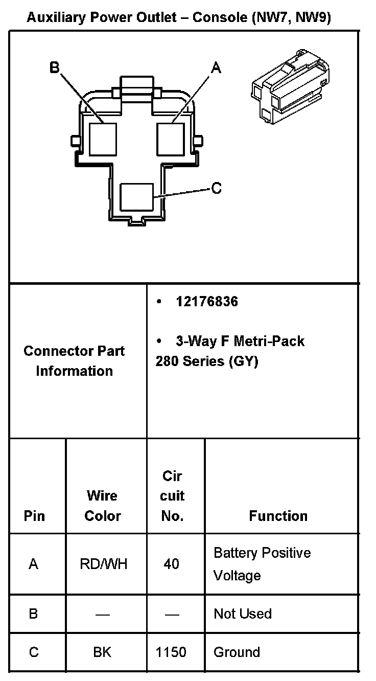 Auxiliary Power Outlet - Console (With RPO Code NW7, NW9):