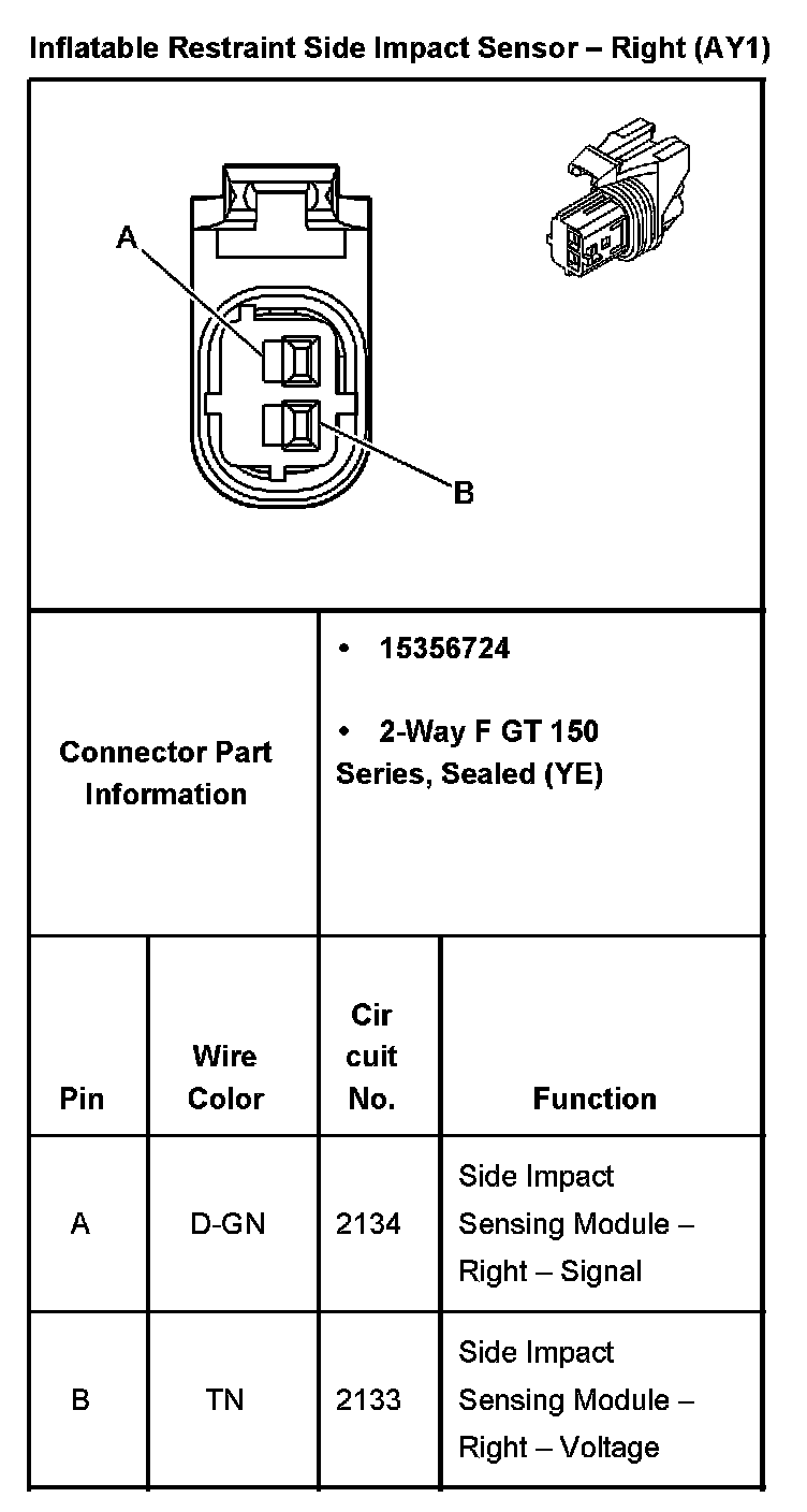 Inflatable Restraint Side Impact Sensor - Right (With RPO Code AY1):