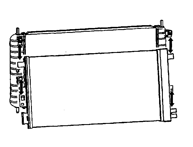 28. Push upward on the radiator and downward on the condenser to unsnap the condenser mounting tabs from the radiator clips.