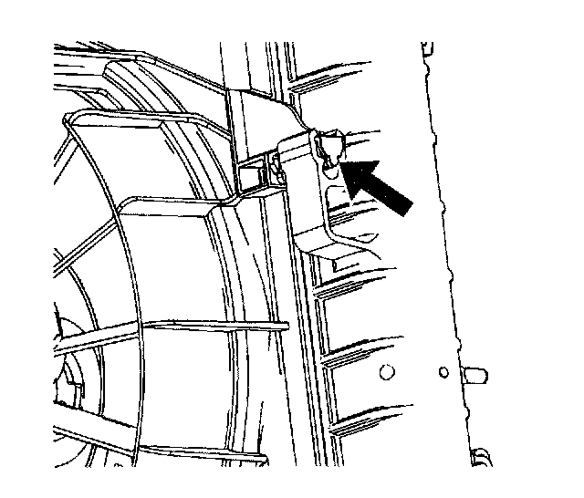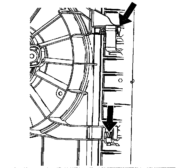 33. Pry upward on the fan shroud tabs at the radiator clips.