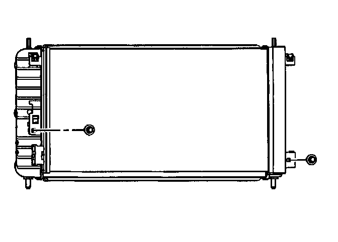 Notice: The bolt retaining the condenser to the radiator end tank is a special length and should be the ONLY bolt used upon reinstallation. The use of a longer bolt will damage the radiator end tank.
