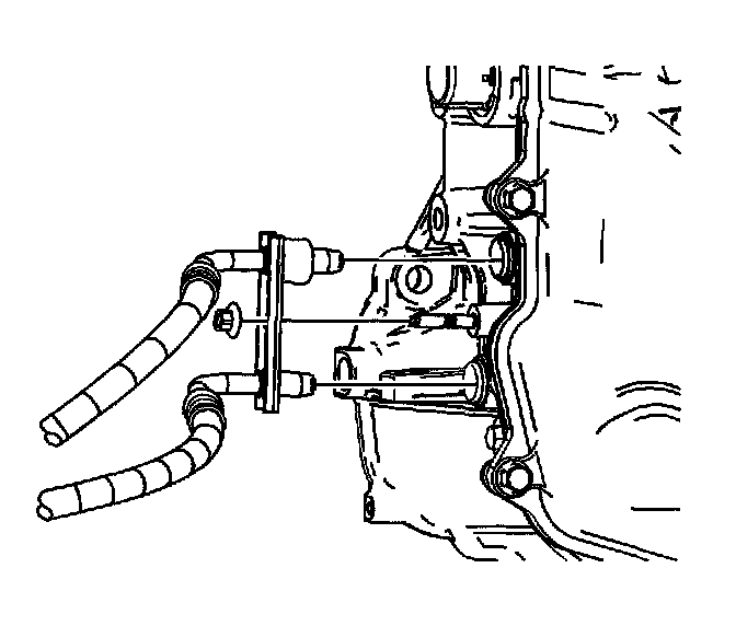 15. Install the transmission oil cooler pipes attachment nut to the transmission.