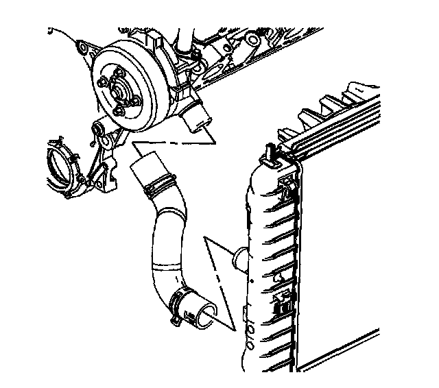 7. Reposition the surge tank outlet hose clamp at the radiator using the J 38185.