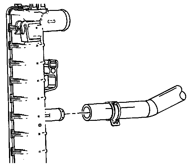 16. Install the radiator outlet hose to the radiator.