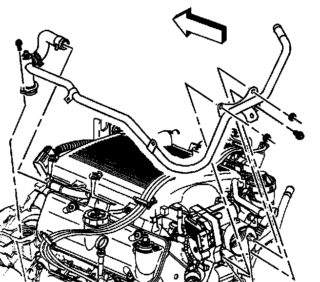 8. Disconnect the heater inlet pipe with heater hose from the lower intake manifold and reposition.