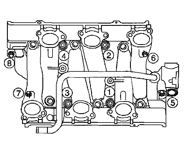 6.3. Tighten the lower intake manifold bolts (5, 6, 7, 8) in sequence to 25 Nm (18 ft. lbs.) on the final pass.