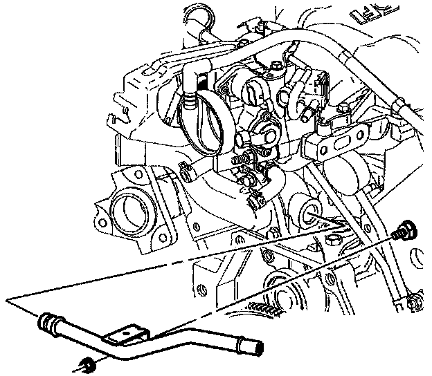 10. Disconnect the thermostat bypass hose from the thermostat bypass pipe and lower intake manifold pipe.