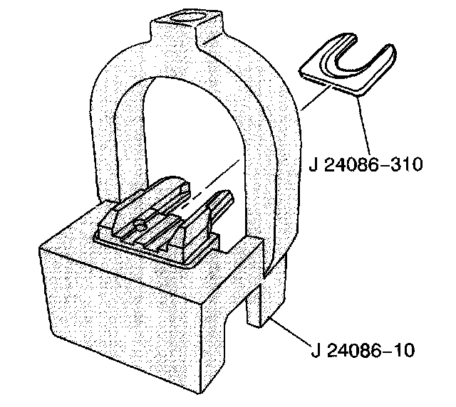 2. Install fork insert J 24086-310 into fixture J 24086-10 piston pin remover/installer base, which are part of J 24086-C.