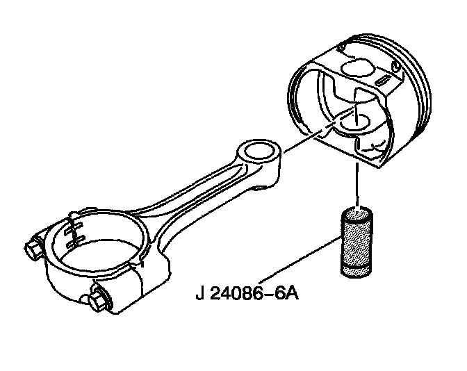 Important: This procedure is to be used for oversized pistons only. Standard size pistons are supplied as an assembly consisting of a piston, piston pin, connecting rod and piston rings. Assemble the piston for the specific cylinder with the connecting rod for the corresponding crankshaft journal.