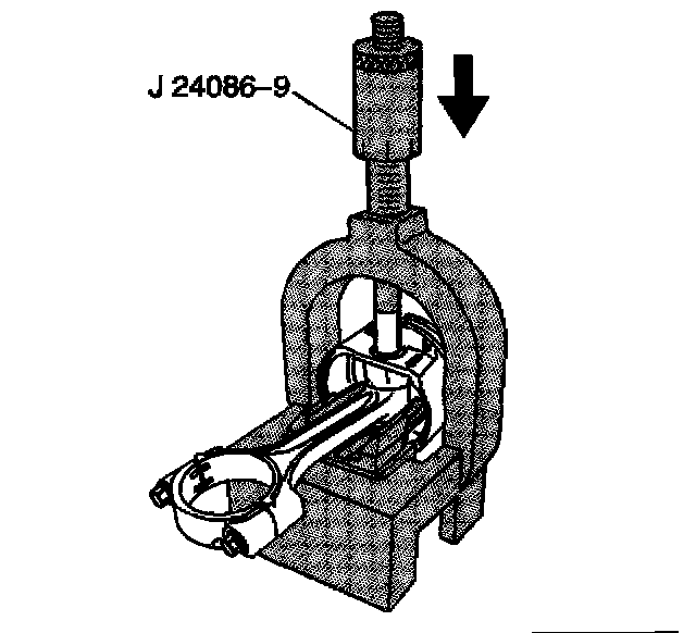 5. Insert pin J 24086-9 through fixture J 24086-10, which are part of J 24086-C and to the piston pin.