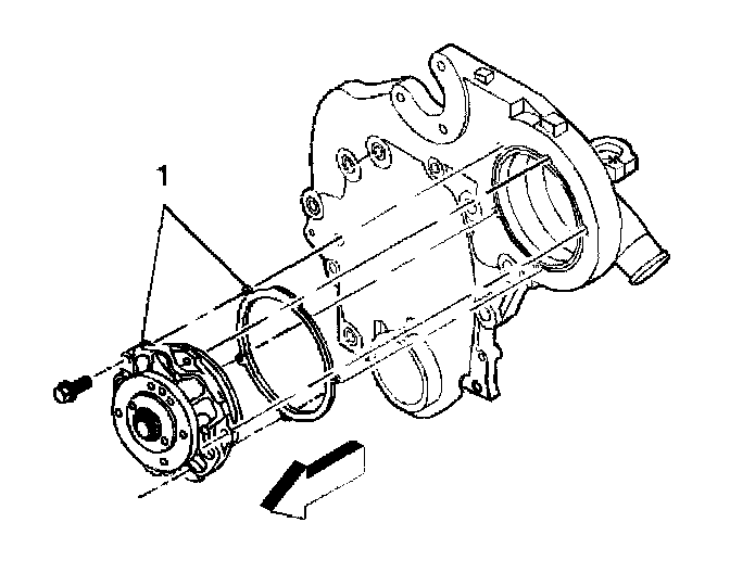 1. Install the water pump gasket and pump (1).