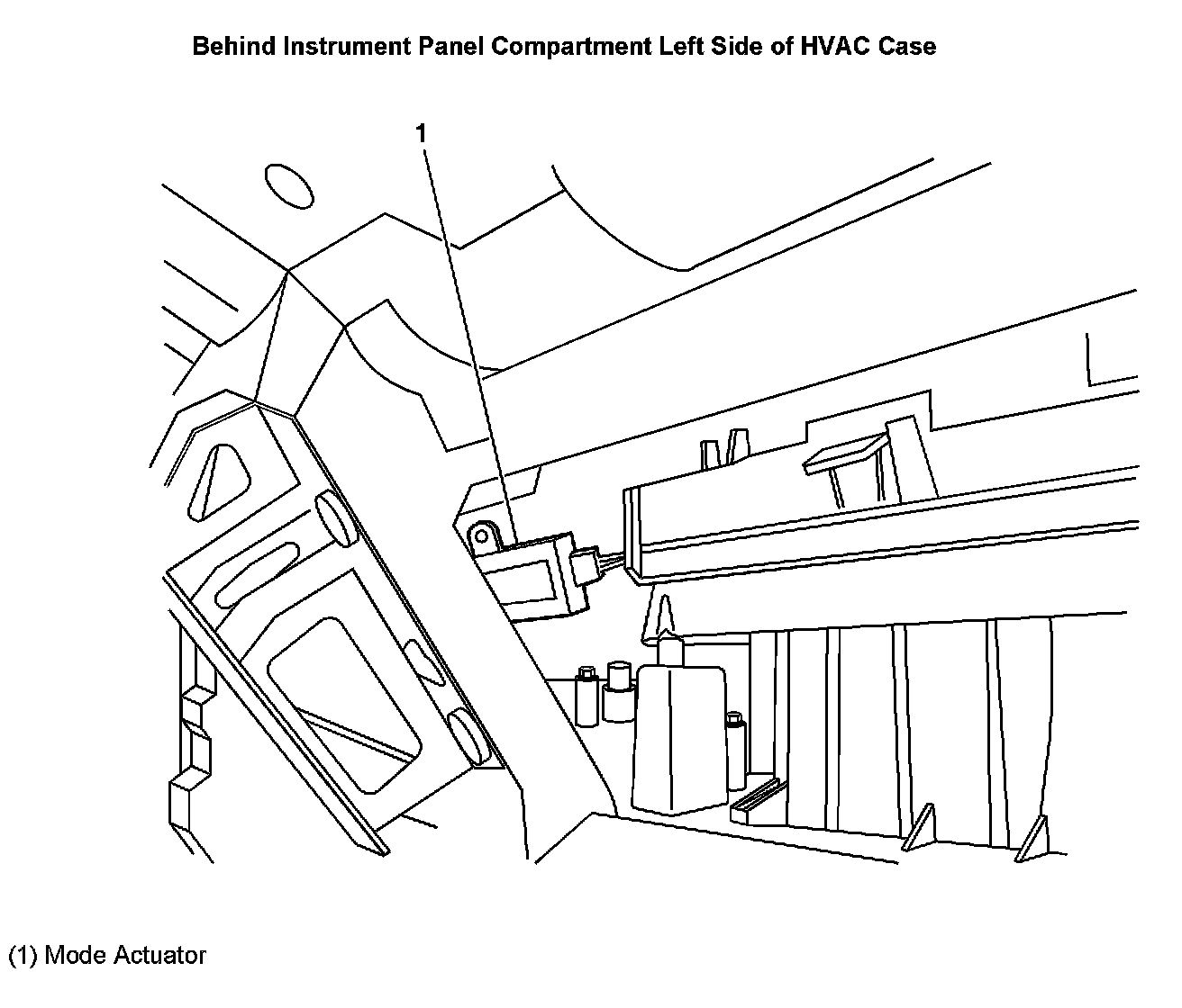 Behind Instrument Panel Compartment Left Side of HVAC Case