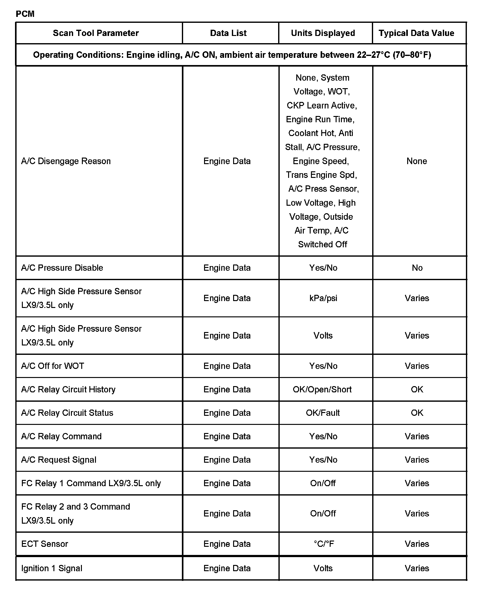 SCAN TOOL DATA LISTPCM: