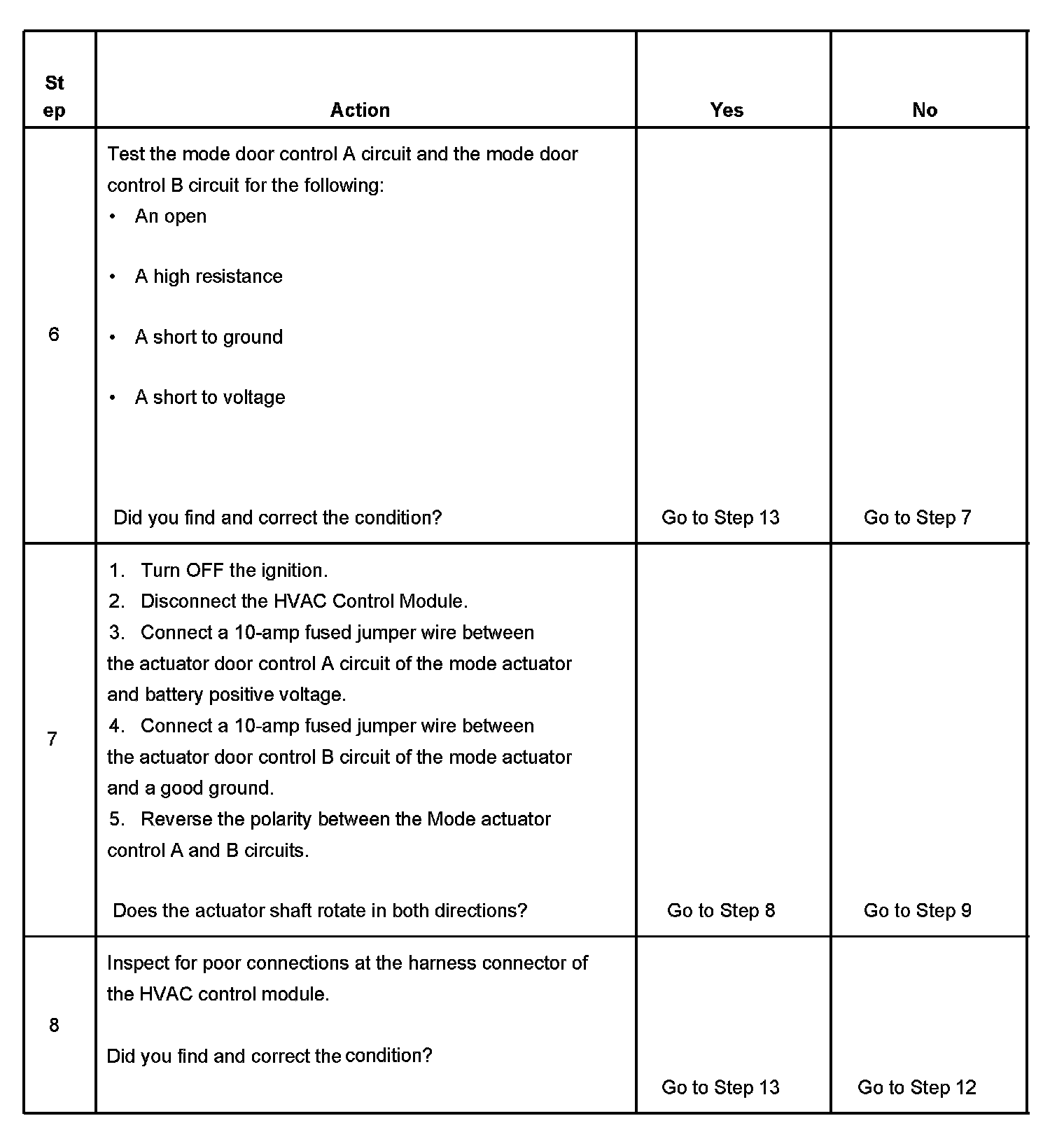 7. This step drives the actuator in both directions. If the actuator door is already in the position you are attempting to drive it to, reverse the polarity to drive the actuator in opposite direction.