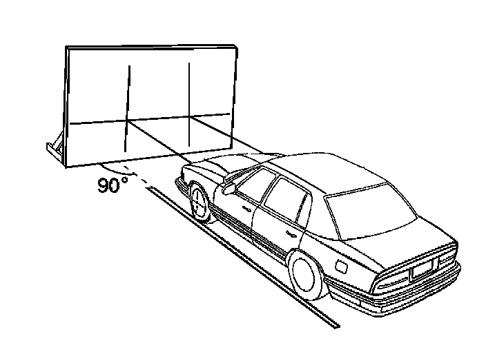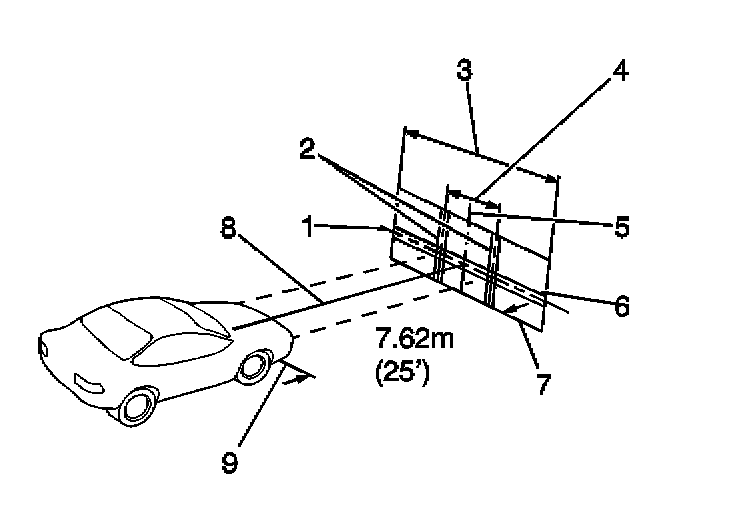 - After the aiming screen has been set up in a permanent location, paint a reference line on the floor directly under the lens of the lamps to indicate the proper location of the headlamps when they are being aimed: