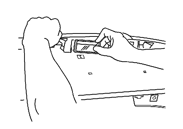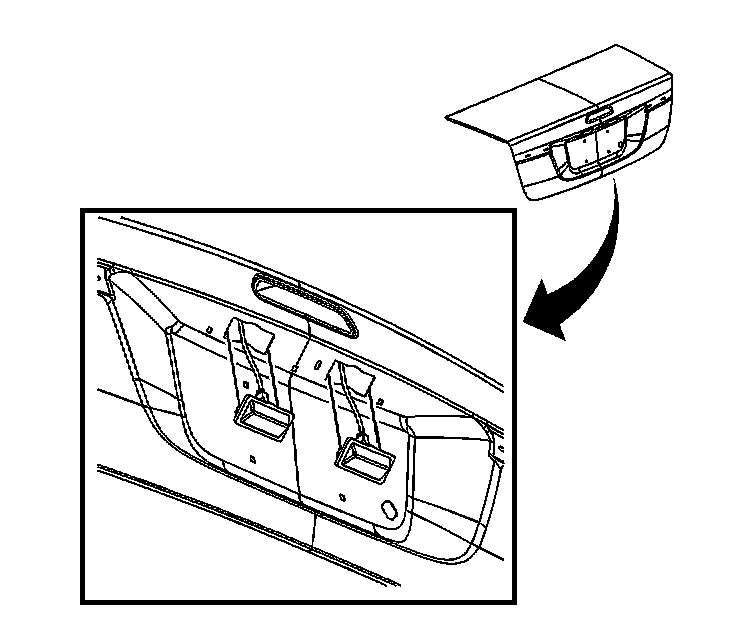 4. Carefully lift the rear compartment lid applique away from the rear compartment lid. Allow clearance for installation of the license lamp.