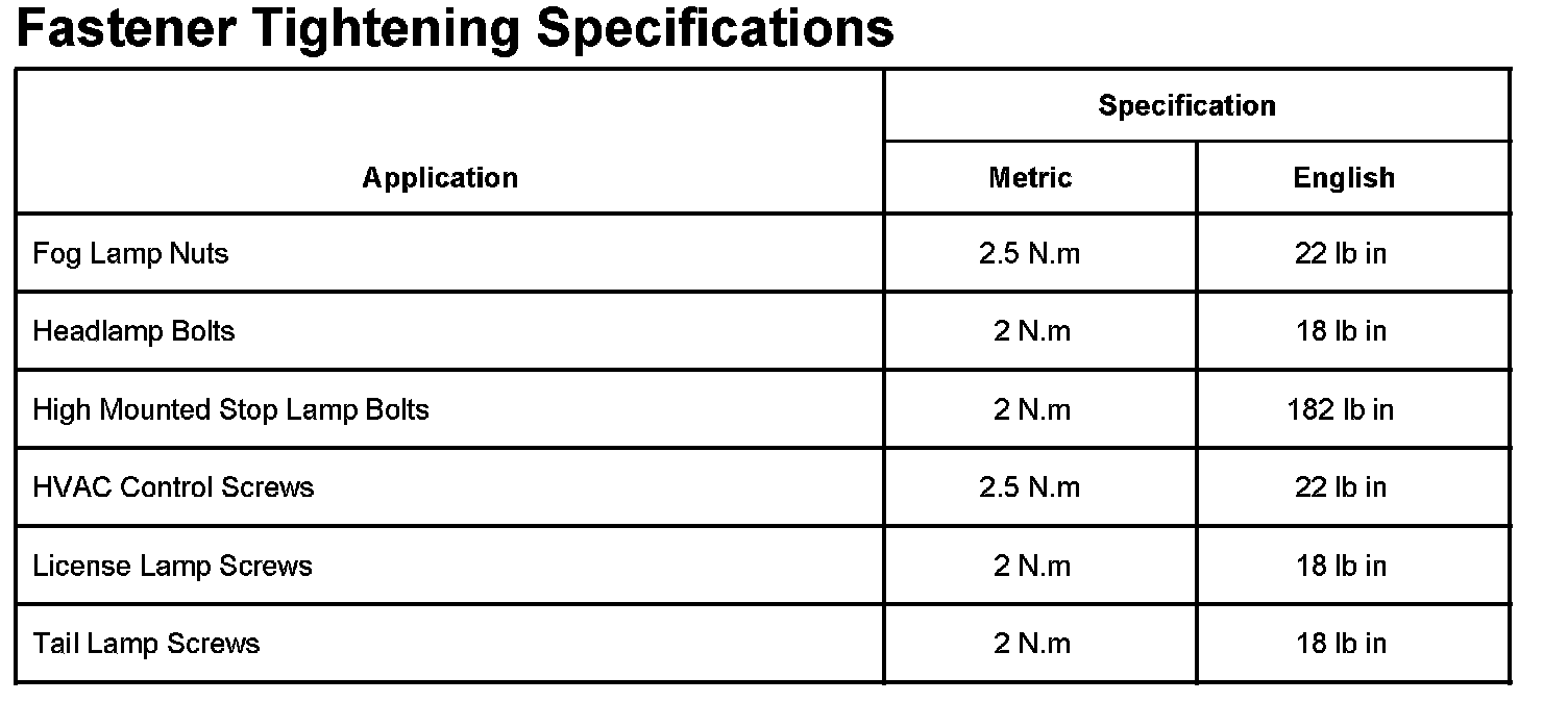Lighting and Horns: Specifications