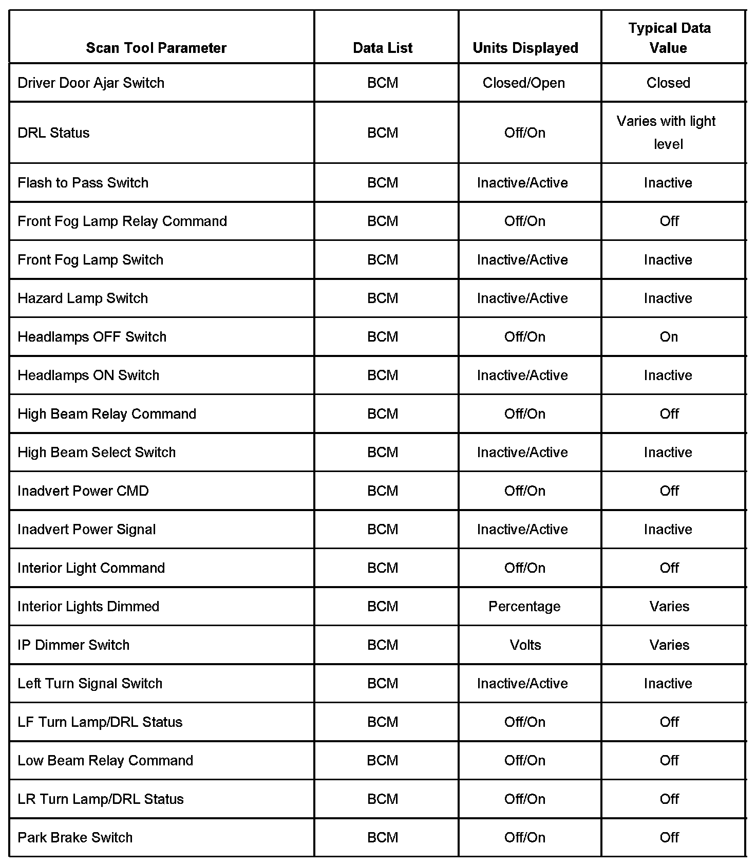 Scan Tool Data List