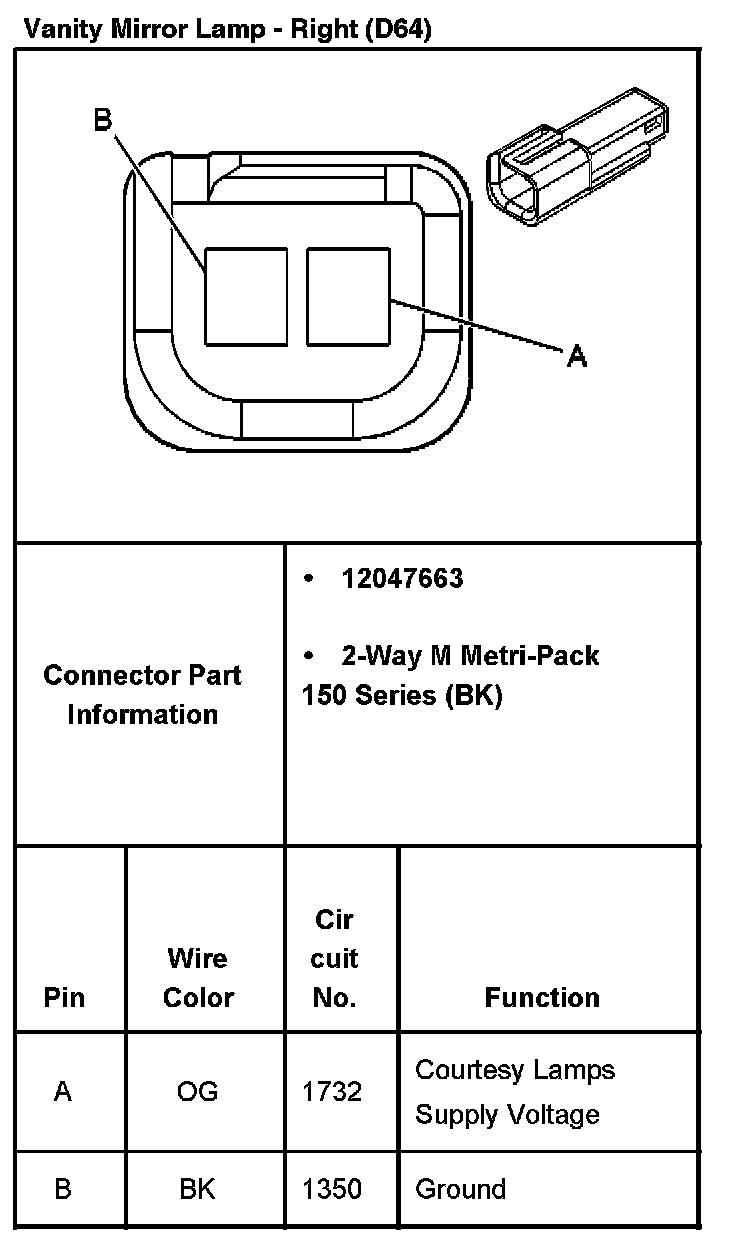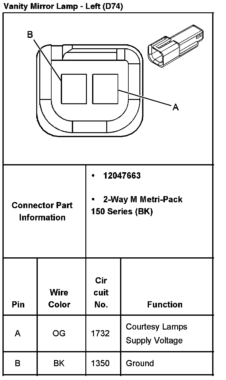 Vanity Mirror Lamp - Right (With RPO Code D74):