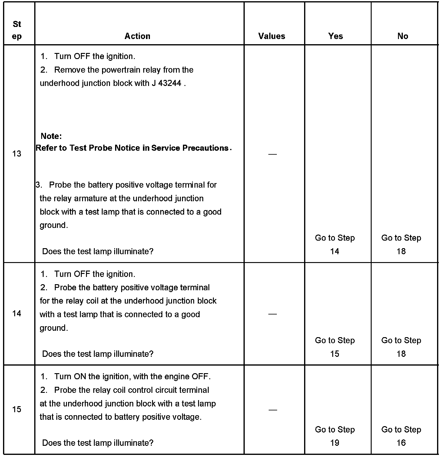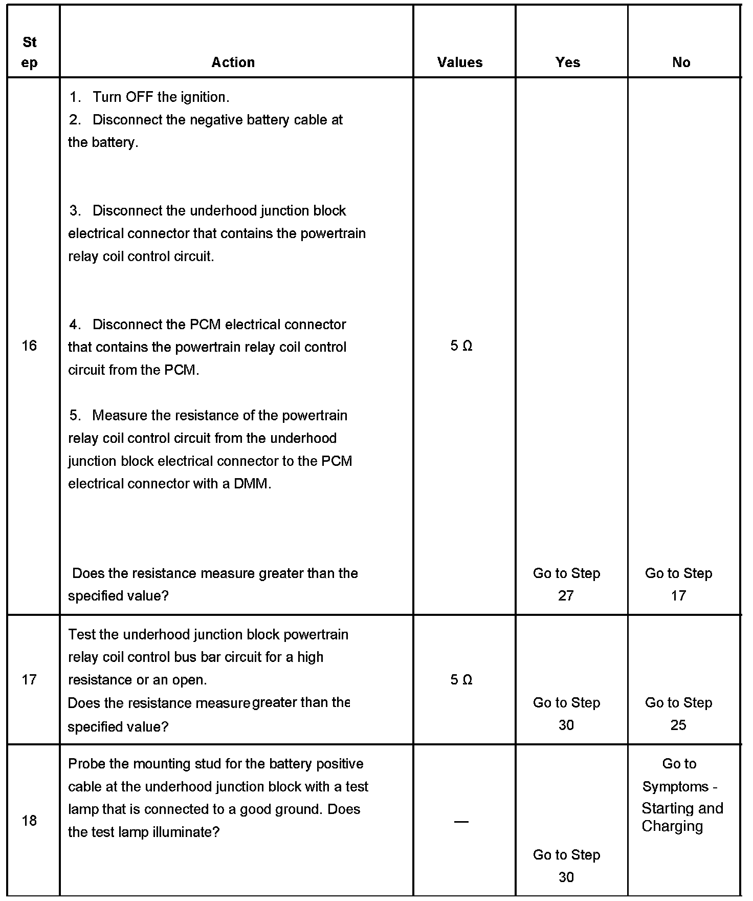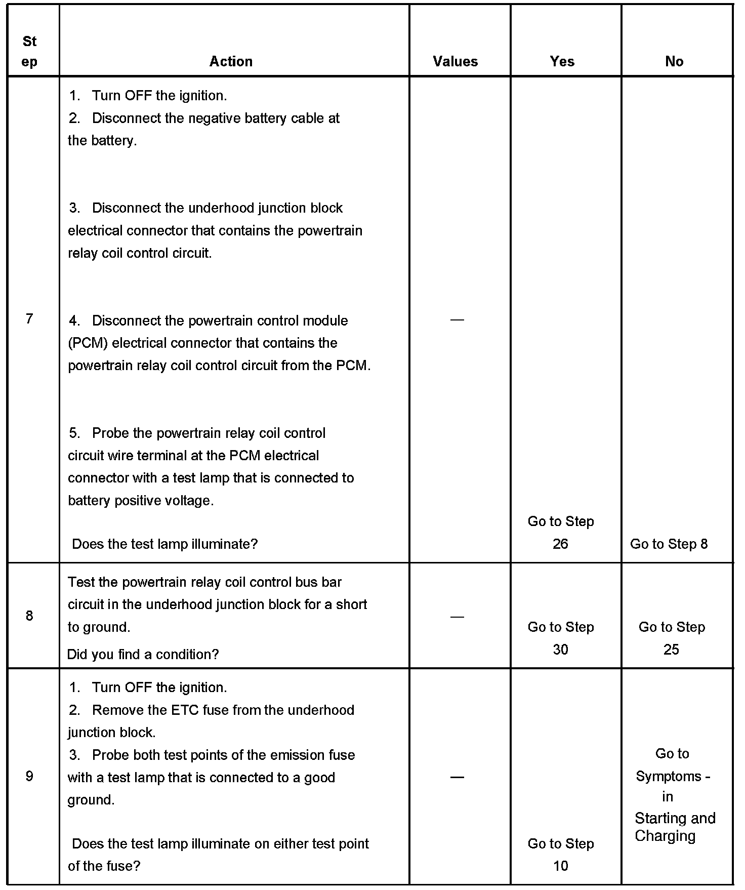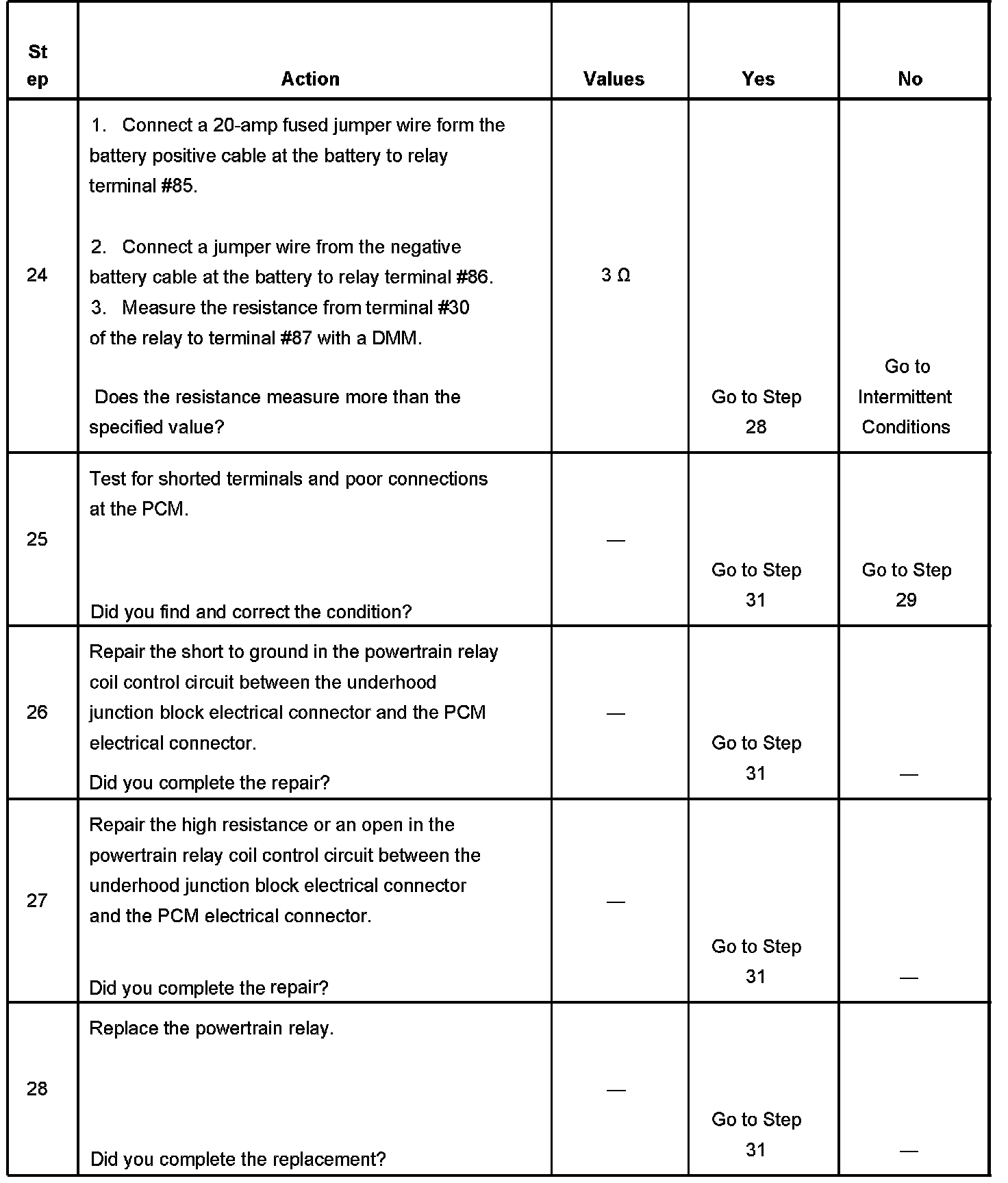 The powertrain relay system diagnosis table assumes that the vehicle battery is fully charged.