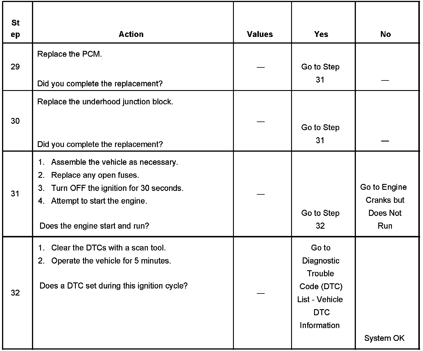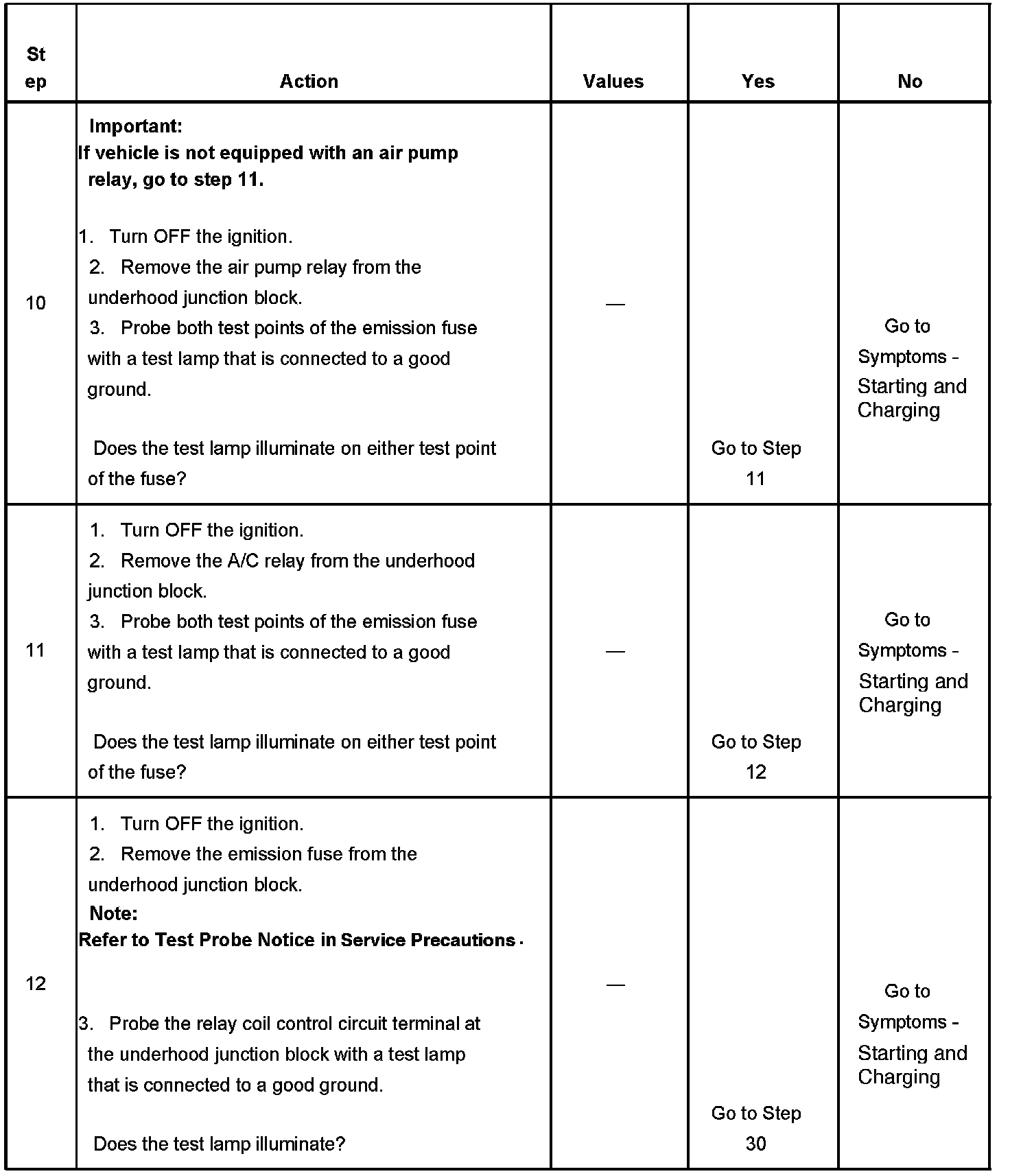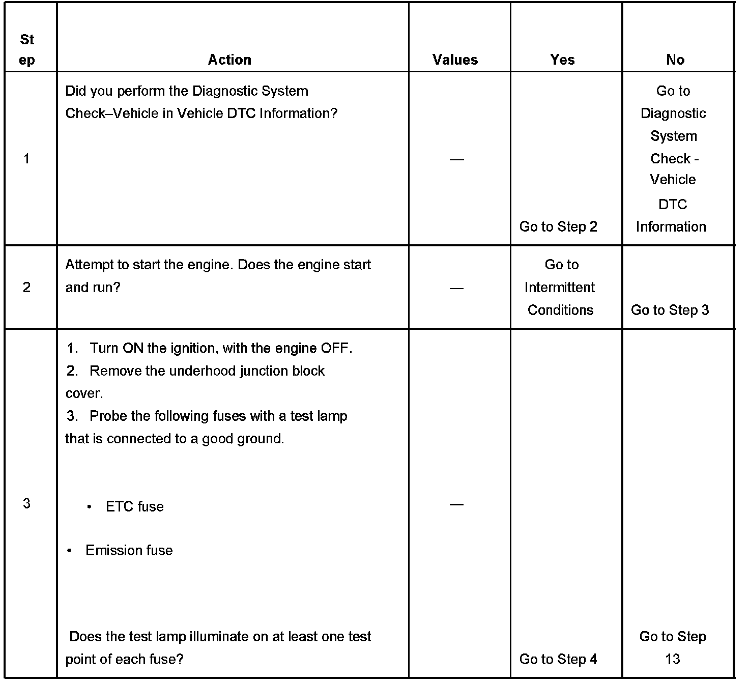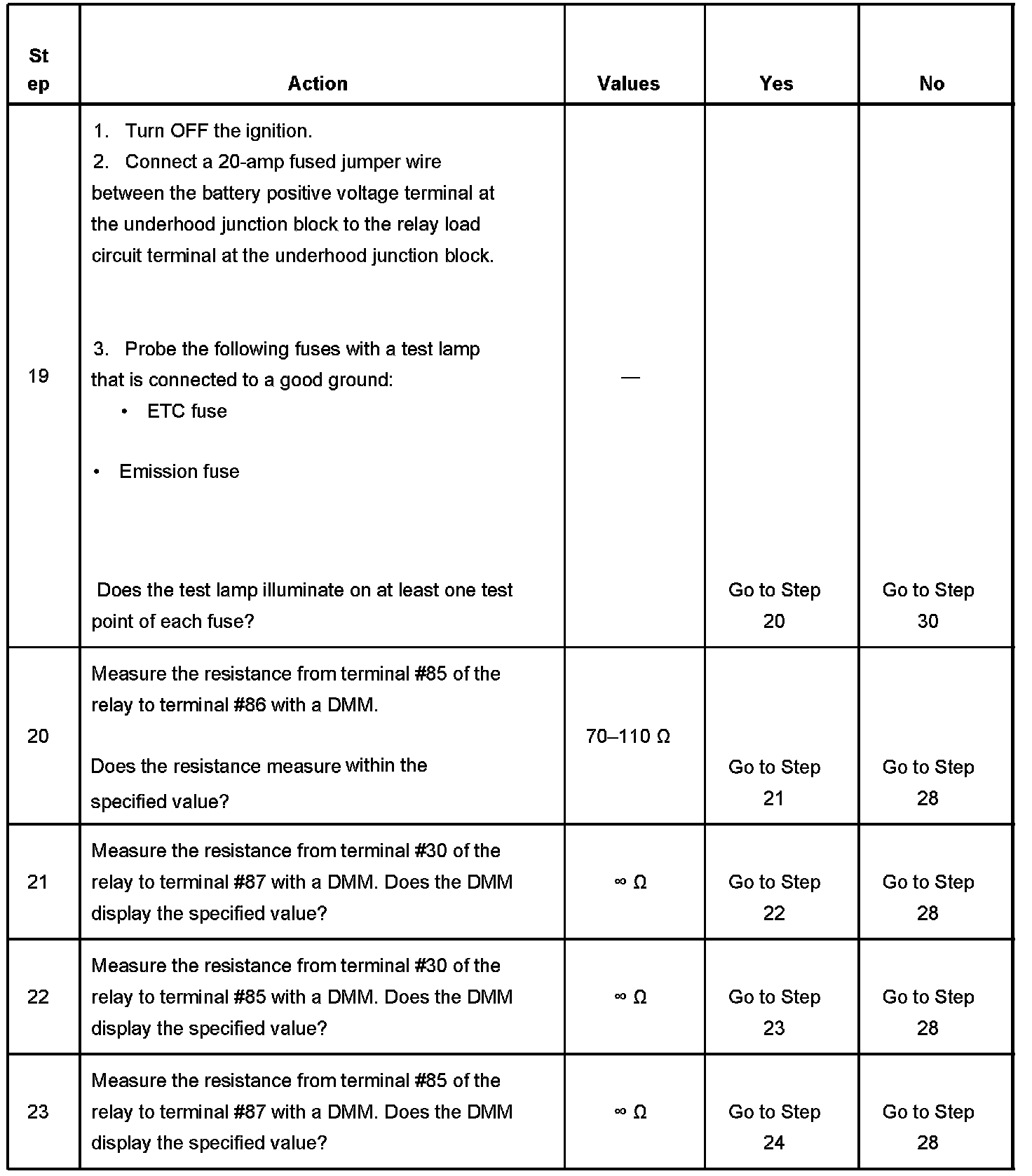 The powertrain relay system diagnosis table assumes that the vehicle battery is fully charged.
