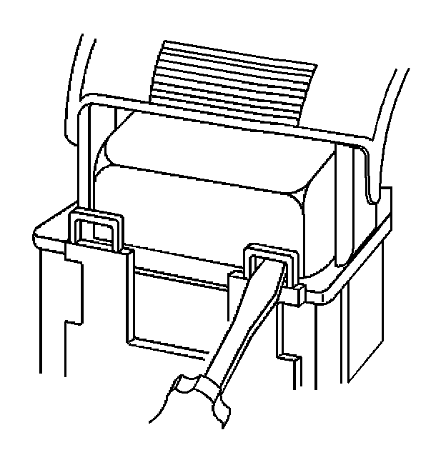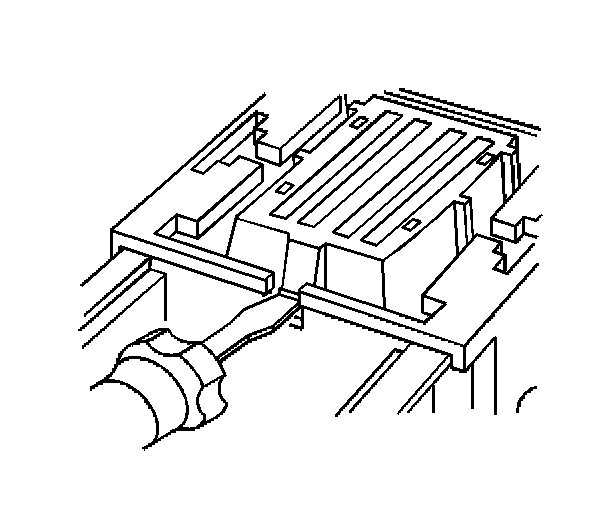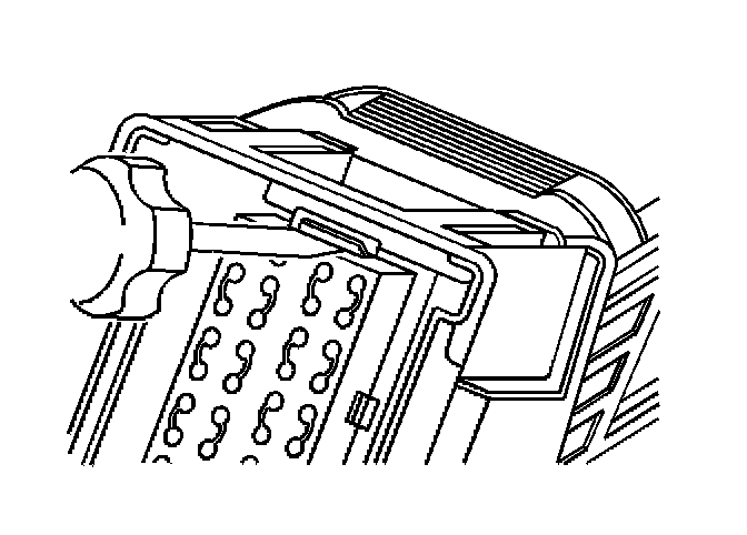 3. Locate the dress cover locking tabs at the front of the connector. Using a small flat-blade tool push down on one of the locking tabs and pull the cover up until the dress cover releases. Repeat this procedure for the other locking tab.