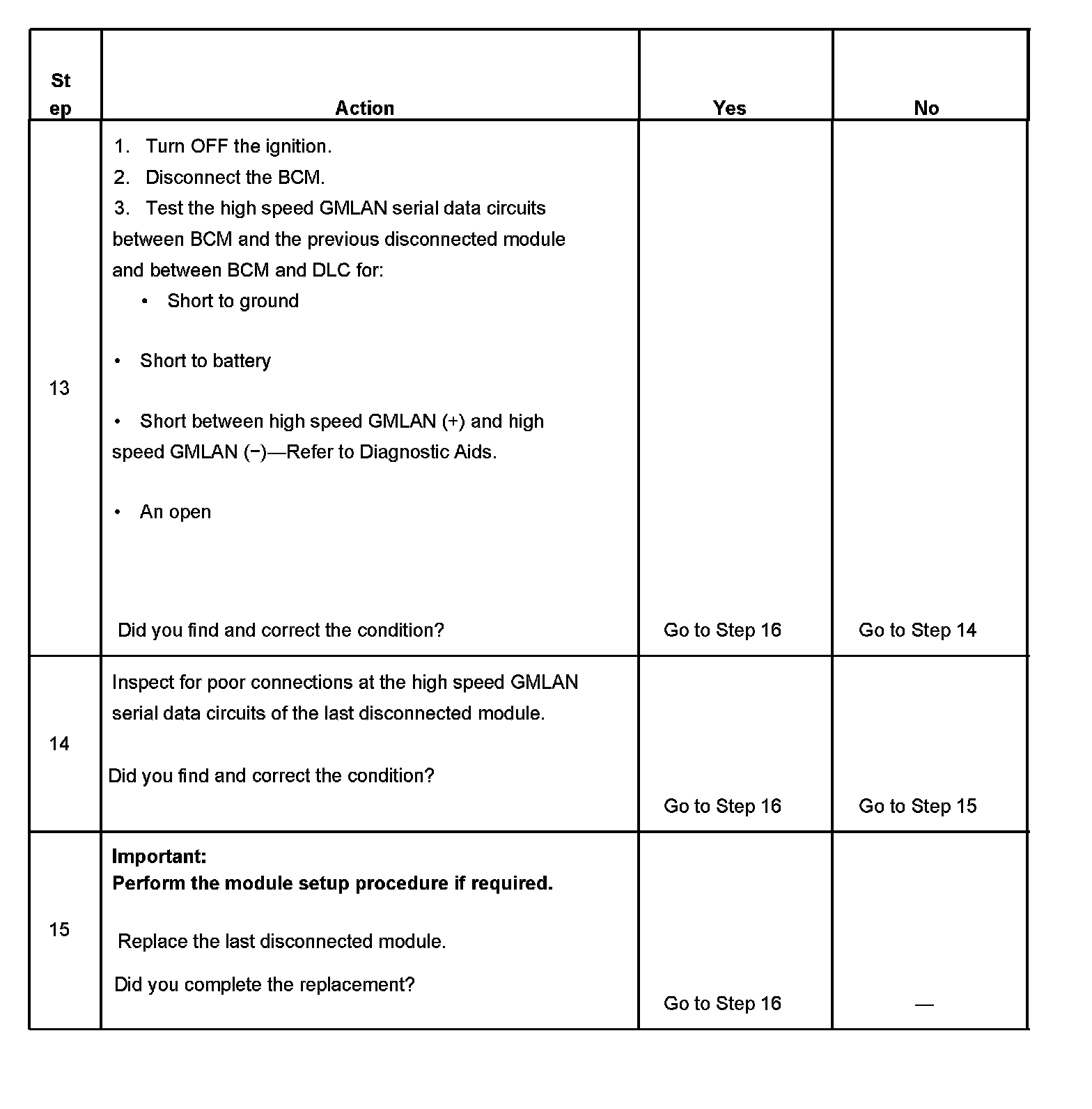 2. A partial malfunction in the high speed GMLAN serial data circuits uses a different procedure from a total malfunction of the high speed GMLAN data circuits. Refer to Data Link References to identify which modules communicate on the high speed GMLAN serial data circuits. Scan Tool Testing and Procedures