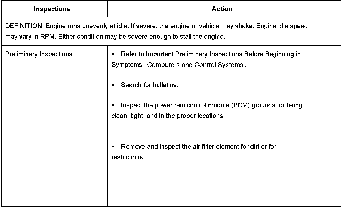 Rough, Unstable, or Incorrect Idle and Stalling