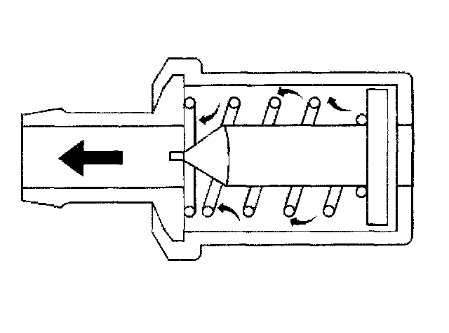 The primary control is through the positive crankcase ventilation (PCV) valve which meters the flow at a rate depending on inlet vacuum. To maintain idle quality, the PCV valve restricts the flow when inlet vacuum is high. If abnormal operating conditions arise, the system is designed to allow excessive amounts of blow by gases to back flow through the crankcase vent into the throttle body to be consumed by normal combustion.