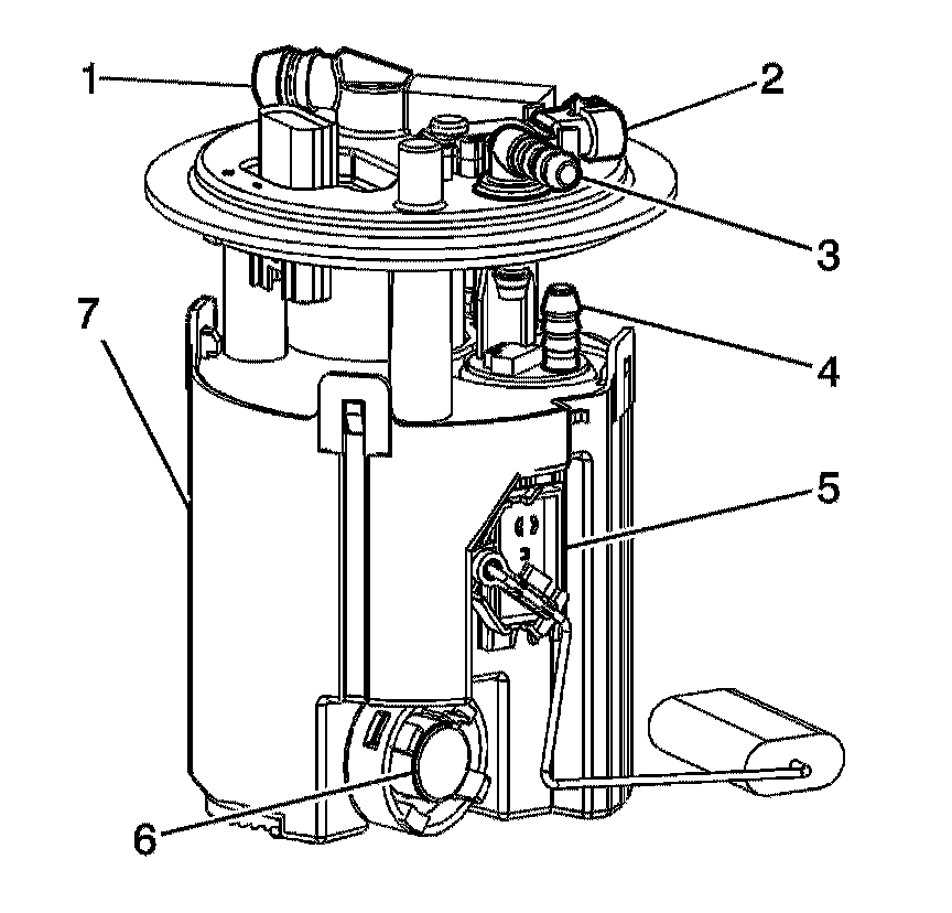 The fuel level sensor consists of a float, a wire float arm, and a ceramic resistor card. The position of the float arm indicates the fuel level. The fuel level sensor contains a variable resistor which changes resistance in correspondence with the amount of fuel in the fuel tank. The powertrain control module (PCM) sends the fuel level information via the class 2 circuit to the instrument panel cluster (IPC). This information is used for the instrument panel (I/P) fuel gauge and the low fuel warning indicator, if applicable. The PCM also monitors the fuel level input for various diagnostics.