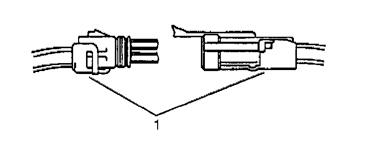 4. Insert the Weather Pack(R) terminal removal tool into the front (mating end) of the connector cavity until it rests on the cavity shoulder (1).