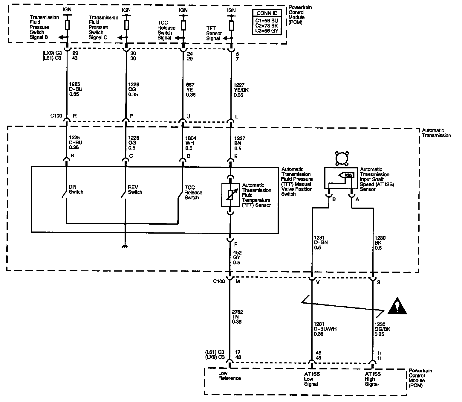 Automatic Transmission Controls Diagrams (Transmission Switches, TFT, and A/T ISS Sensor):