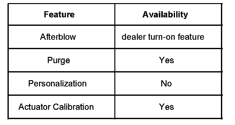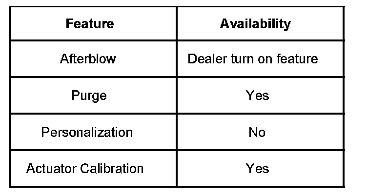 The HVAC control module is a GMLAN device that interfaces between the operator and the HVAC system to maintain air temperature and distribution settings. The control module communicates on the low-speed data bus. The battery positive voltage circuit provides power that the control module uses for keep alive memory (KAM). If the battery positive voltage circuit loses power, then all HVAC DTCs and settings will be erased from KAM. The temperature display reading at the control head can be converted from �C to �F by pressing the Auto button for a minimum of 3 seconds. The ignition 3 voltage circuit provides a device on signal. The control module supports the features as shown in the table.